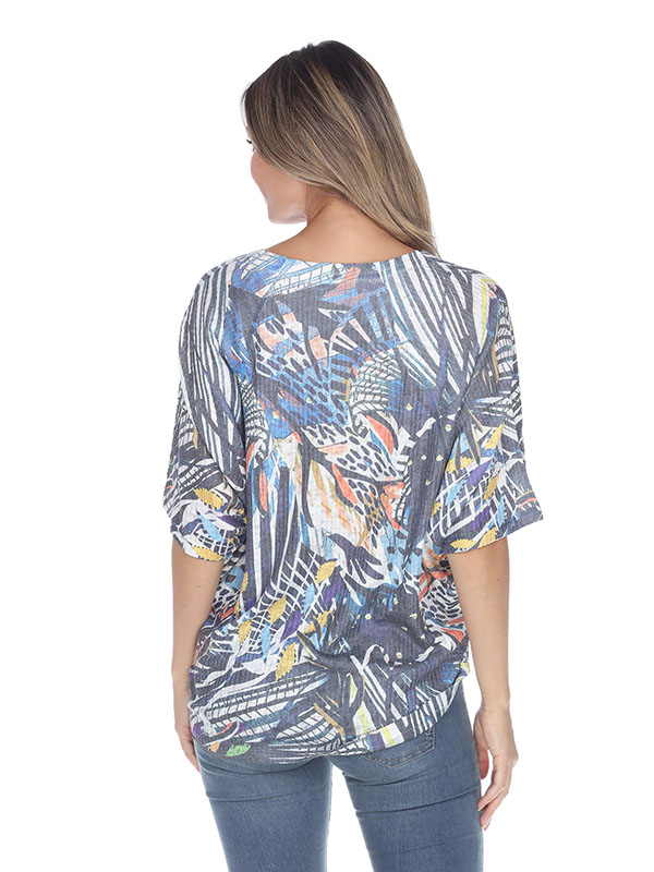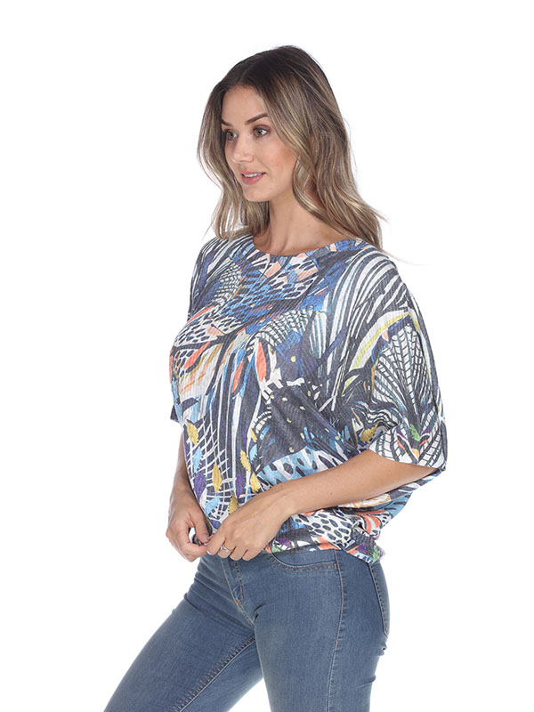 This Inoah top has scoop neck, a simple relaxed cut & a curved hi-lo hem. The fit and feel is amazing, The graphic print is guaranteed to add some fun and whimsy to day. Made in the USA.